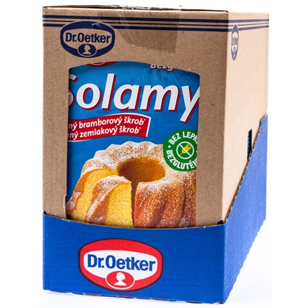 - Piškotovému těstu dodává jemnou strukturu. Lze použít na přípravu různých náplní a omáček za tepla. Ideální na přípravu asijské kuchyně.Recept z obalu: Bábovka:250g másla, 250g cukru, 1 balíček Vanilínového cukru Dr.Oetker a 4 vejce vyšleháme elektrickým ručním šlehačem do pěny. 300g hladké mouky promícháme se 100g Solamylu a 1/2 balíčkem Kypřícího prášku do pečiva Dr.Oetker a lehce vmícháme do těsta společně s 200ml mléka. Těsto vlijeme do vymazané a moukou vysypané bábovkové formy a pečeme v předehřáté troubě při 175°C (elektrická trouba) po dobu asi 50 minut. Necháme vychladnout a servírujeme.