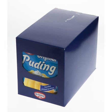 - Puding s vanilkovou příchutí v prášku na 1/2 l mléka (4 porce). 1. Obsah sáčku dobře rozmícháme se 2-3 polévkovými lžícemi cukru (30-40 g) v 1/3 připraveného mléka. 2. Zbylé 2/3 mléka přivedeme k varu. Poté odstavíme z plotny a vmícháme předem připravenou směs s pudingem. 3. Puding za stálého míchání vaříme asi 1 minutu. 4. Hotový puding nalijeme do misek nebo formiček vypláchnutých studenou vodou a necháme ztuhnout.