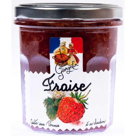- jahody 45%, cukr, jablka 15%, želírovací činidlo: pektin.