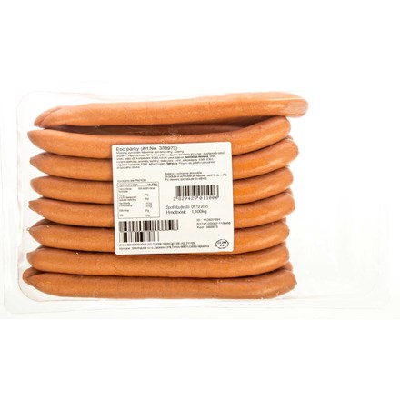 - Vepřové maso 67 % hm.; pitná voda; hovězí maso 10 % hm.; dusitanová solící směs: jedlá sůl, konzervant: E250; koření a bylinky (obsahuje HOŘČIČNOU mouku, CELER); dextróza; látka zvýrazňující chuť a vůni: E621; LAKTÓZA; aroma; stabilizátor: E450; antioxidanty: E300, E301; regulátor kyselosti: E330. Nejvyšší obsah soli 2,2 % hm. Nejvyšší obsah tuku 25 % hm.