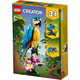 - Se stavebnicí Exotický papoušek (31136) od LEGO® Creator 3 v 1 se malí stavitelé a milovníci zvířat od 7 let vypraví do pralesa, kde zažijí akční dobrodružství. Mohou se těšit na pestrobarevného papouška, který sedí na větvi, kde se otáčí a hýbe křídly a ocasem.