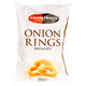 - Předsmažené, obalované, krájené cibulové kroužky (s cukrem)