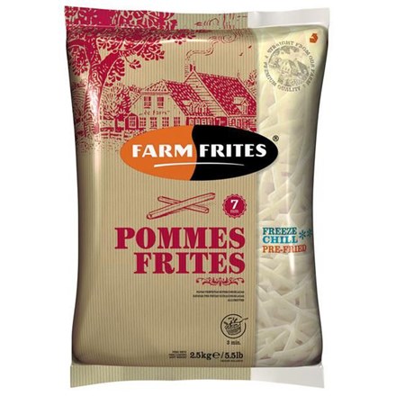 - Hluboce zmrazené bramborové hranolky 7 mm předsmažené.