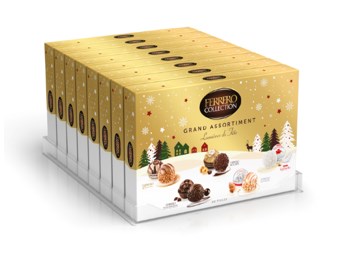 - elegantní dárkové balení prémiových pralinek od značky Ferrero, které spojuje tři ikonické druhy čokoládových specialit: Ferrero Rocher, Raffaello a Ferrero Rondnoir. Je navrženo jako ideální dárek pro slavnostní příležitosti – kombinuje luxusní chuť, atraktivní vzhled a prvotřídní kvalitu.