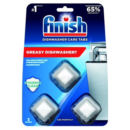 - I když si myčka poradí se špinavým nádobím, mohou jí zbytky mastnoty a špíny uniknout a hromadit se uvnitř myčky. Kapsle Finish na čištění myčky odstraňují mastnotu a špínu z myčky, která mezitím umyje nádobí. Pročistí filtr, rotační ramena i odpad. Pro 100% hygieničtější péči o myčku*.