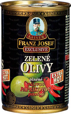 - Zelené olivy plněné pálivou paprikovou pastou ve slaném nálevu. Zpracované olivy. Pasterováno. Pálivý výrobek.