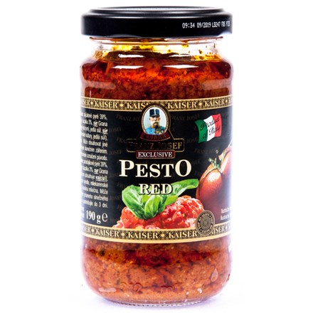 - rajčatové pyré 39%, slunečnicový olej, sušená rajčata 12,5%, mletá jádra KEŠU OŘECHŮ, bazalka 3%, SÝR Grana Padano DOP 3% (MLÉKO, jedlá sůl, syřidlo, konzervant: VAJEČNÝ lysozym), jedlá sůl, SÝR Pecorino Romano DOP 1% (OVČÍ MLÉKO, jehněčí syřidlo, mlékárenské kultury, jedlá sůl), česnek, ocet kvasný vinný, regulátor kyselosti: kyselina mléčná.