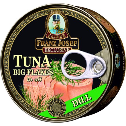 - Tuňák kousky ve slunečnicovém oleji s koprem. Sterilováno. Rybí konzerva.