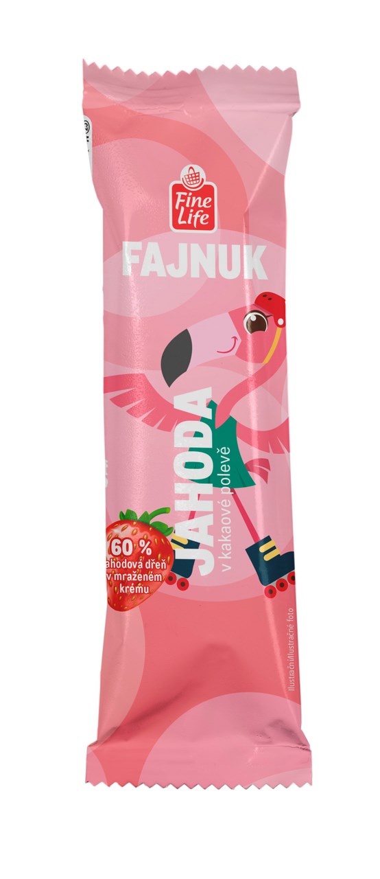 Fajnuk s 60 % jahodové dřeně v krému, který přináší intenzivní ovocnou chuť a osvěžení v každém soustu.