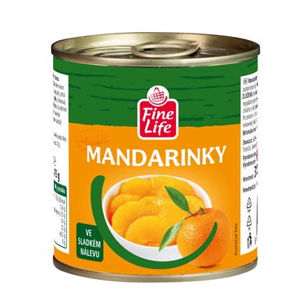 - Mandarinky ve sladkém nálevu. Konzervované pasterované jednodruhové ovoce s nálevem.