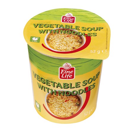 - nudle 81% (pšeničná mouka, slunečnicový olej, škrob, jedlá sůl, kypřící látka: uhličitany sodné, regulátor kyselosti: uhličitany draselné), zelenina 8,2% (mrkev 29%, hrášek, cukrová kukuřice, cibule, pór 12%, paprikové floky 12%), maltodextrin, jedlá sůl s jódem (jedlá sůl, jodičnan draselný), škrob, cukr, přírodní aromata, kvasničný extrakt, koření (obsahuje celerové semeno), extrakt z petržele, slunečnicový olej, petržel, kyselina: kyselina citronová, libeček, sirup ze zkaramelizovaného cukru.