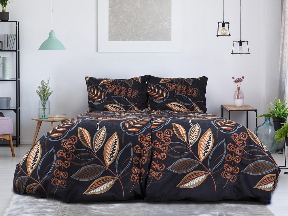 Povlečení flanel 140 x 200 + 70 x 90 cm noční listí 1 ks