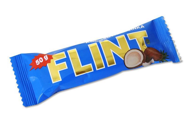 - Kokosová tyčinka polévaná cukrářskou polevou tmavou.
