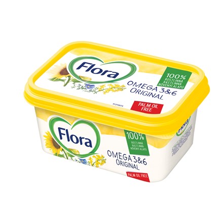 pitná voda, rostlinné oleje (řepkový, slunečnicový, lněný), kokosový tuk, sůl (0,5 %), emulgátory (mono- a diglyceridy mastných kyselin), regulátor kyselosti (kyselina citronová), přírodní arómy, vitamíny (A, D)