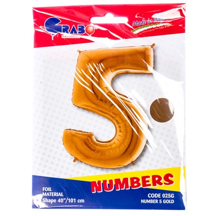 Balónek fóliová číslice "5" zlatá 102cm 1 ks