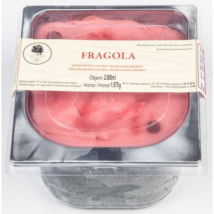 - Pitná voda, jahodové pyré a dřeň (17 %), cukr, rehydratované odstředěné MLÉKO, plnotučné MLÉKO, dextróza, glukózový sirup, dekorace: kandované jahody (0,5 %) [jahody, glukózo-fruktózový sirup, cukr, regulátor kyselosti (kyselina citrónová), konzervant (sorban draselný)], regulátor kyselosti (kyselina citrónová), jahodová omáčka (0,3 %) [cukr, pitná voda, glukózový sirup, jahodový protlak, modifikovaný kukuřičný škrob, regulátor kyselosti (kyselina citronová), aroma, stabilizátor (agar), barvivo (anthokyany)], stabilizátory (karboxymethylcelulosa, guma guar, alginan sodný, sorbitol, pektiny), maltodextrin, přírodní aroma, emulgátor (mono- a diglyceridy mastných kyselin), jedlá sůl.