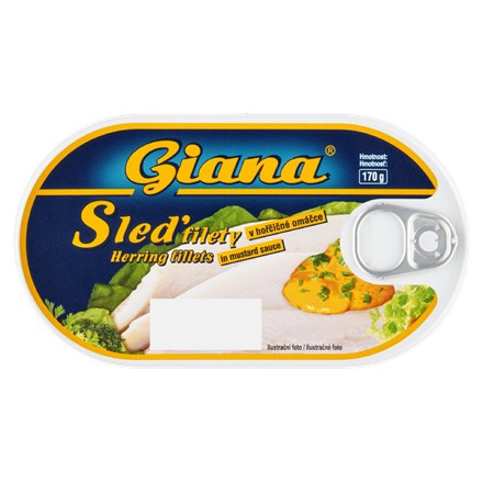 - Sleďové filety v hořčičné omáčce. Rybí konzerva, sterilováno.