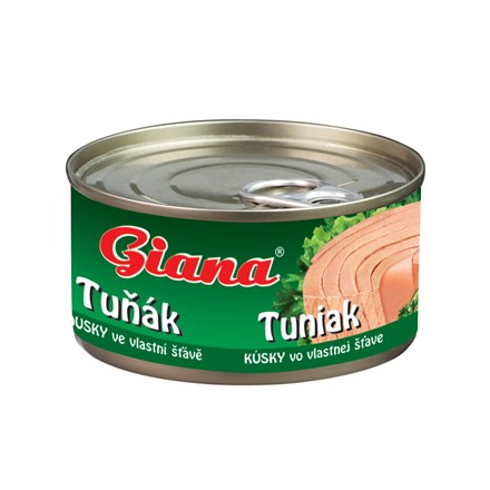- Tuňák kousky ve vlastní šťávě. Rybí konzerva. Sterilováno.