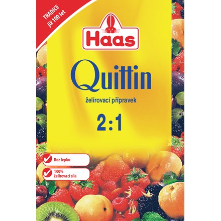 - Návod k použití: Omyté a odpeckované ovoce nakrájejte nebo rozmixujte, teprve poté odvažte. Ovocnou dužinu nebo šťávu nalijte do hrnce, posypte ji přípravkem Quittin a promíchejte. Za stálého míchání přiveďte k varu, poté vmíchejte 1/2 kg cukru, znovu přiveďte k varu a za stálého míchání vařte dalších 3-5 minut. Horký džem nalijte do sklenic a ihned uzavřete. Otočte a na cca 5 min. postavte na víčka. Příprava s ovocnou šťávou: 1 sáček vystačí na 900 g ovocné šťávy a 1/2 kg cukru