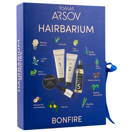 - BONFIRE HAIRBARIUM je sada produktů komplexní péče pro vlasy suché, kudrnaté, silné, poškozené či barevné. Sada obsahuje i praktický návod, jak o vlasy pečovat a zajímavé informaceme o ingrediencích, které produkty obsahují. Vše zabaleno v krásném dárkovém balení.