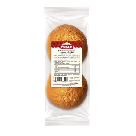 - pšeničná mouka, voda, řepkový olej, droždí, přípravek (pšeničná mouka, pšeničný lepek, cukr, ječná sladová mouka, emulgátory: E471, E472e; řepkový olej, látka zlepšující mouku: kyselina L-askorbová), sezamová semena 1 %, sůl s jódem (jedlá sůl, jodičnan draselný).