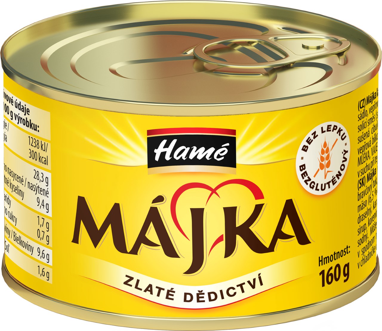 - Pork lard, pork skin, water, pork liver (15 %), pork broth, pork (6,5 %), salting mixture (salt, preservative: sodium nitrite), stabiliser (potassium chloride, carrageenan, carob gum), dried onion, seasoning (salt, glucose syrup, spices, dextrose, spice extracts), pork protein, flavour enhancer: monosodium glutamate. Vepřové sádlo, vepřové kůže, voda, vepřová játra (15 %), vývar z vepřového masa, vepřové maso (6,5 %), solící směs (sůl, konzervant: dusitan sodný), stabilizátor (chlorid draselný, karagenan, karubin), sušená cibule, kořenící přípravek (sůl, glukózový sirup, koření, dextróza, extrakty koření), vepřová bílkovina, látka zvýrazňující chuť a vůni: glutamát sodný.