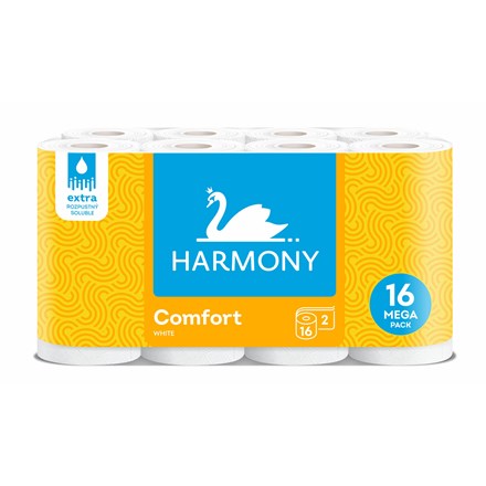 - Toaletní papír Harmony je dermatologicky testovanýBílý papír je jemný a měkký, aby zajistil pocit maximálního komfortu.