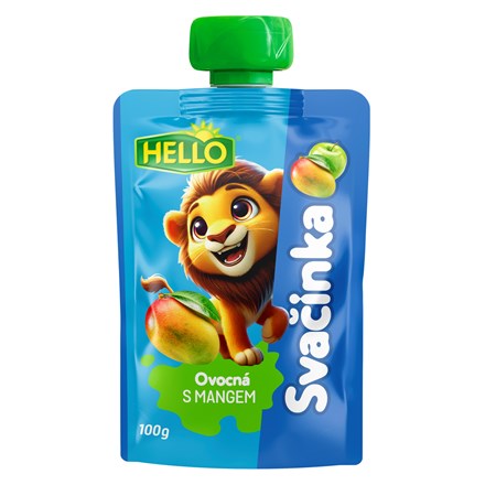 - Ovoce 85 % hm. (jablečná dřeň 52% hm., mangová dřeň 33 % hm.), voda, cukr, modifikovaný škrob, antioxidant : kyselina askorbová, vitamín C (min. 10 mg ve 100 g, tj. 40% referenční hodnoty vitaminu pro kojence a malé děti a 12,5% referenční hodnoty příjmu pro dospělé)
