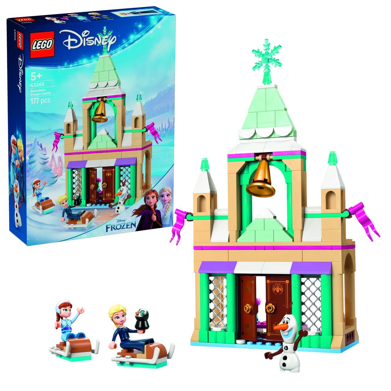 Děti a fanoušci od 5 let se se zábavnou stavebnicí LEGO® | Disney Ledové království (43265) Hrad Arendelle z filmu Ledové království můžou těšit na fantastická dobrodružství. Sestavitelný hrad má otevírací dveře, jídelnu a ložnici, 2 sestavitelné sáňky, na kterých můžou děti závodit, a další zábavné prvky. Stavebnice navíc obsahuje minipanenky LEGO | Disney Elsy a Anny a figurku LEGO | Disney sněhuláka Olafa.