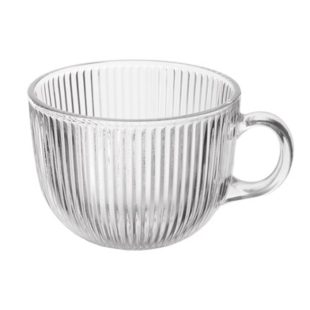 - Čirý hrnek s uchem o velkém objemu na pořádnou dávku čaj, kávy... Materiál: sklo. Max. teplota 100 °C. Plastický dekor vroubků. Rozměry: objem 0,5 l, pr. 11 cm, v. 8,5 cm. Lze mýt v myčce na nádobí. Vhodný do domácnosti i pro kavárny, restaurace... Není možné použít v MVT.