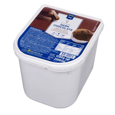 - čokoládová zmrzlina 96%: pitná voda, PLNOTUČNÉ MLÉKO (19%), SMETANA (18%), cukr, glukozovo-fruktozový sirup, SUŠENÁ SYROVÁTKA, čooládový prášek 3,5% (kakaový prášek, kakaový prášek se sníženým obsahem tuku, kakaová pasta, cukr), regulátory kyselosti: E501i, E524, glukózový sirup, stabilizátory: E471, E410, E412, antioxidanty: E307, E304i, E472c, kousky černé čokolády 4%: cukr, kakaová pasta, kakaové máslo, BEZVODNÝ MLÉČNÝ TUK, kakaový prášek se sníženým obsahem tuku, emulgátor: SOJOVÝ LECITIN, přírodní vanilkové aroma.