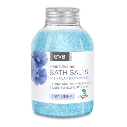 - Hydratační koupelové soli z přírodních ložisek obsahují cenné prvky (např. mangan, kobalt, železo, chrom a měď) a lněný BIOkomplex, který pomáhá udržovat optimální úroveň vlhkosti pokožky. Díky přídavku 10% urey je pokožka jemná a hedvábná na dotek. Koupel s lněnými solemi pečuje o pokožku a uvolňuje, pomáhá zmírňovat stres a únavu. Jemnozrnná sůl se snadno rozpouští. Vhodné pro vegany.