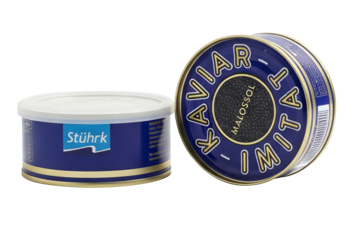 - "Složení: Pitná voda (88,8 %), sůl (3,5 %), slunečnicový olej (1,96 %), modifikovaný škrob (1,96 %), cukr (1,08 %), zahušťovadla (alginát sodný, karboxymethylcelulóza sodná), regulátor kyselosti (laktát vápenatý), barvivo (uhlíkový prášek), zvýrazňovače chuti (glutamát sodný, disodný 5’-ribonukleotid), aroma, stabilizátor (chlorid vápenatý), kouřové aroma, konzervanty (sorban draselný, benzoan sodný), antioxidant (kyselina citronová)"
