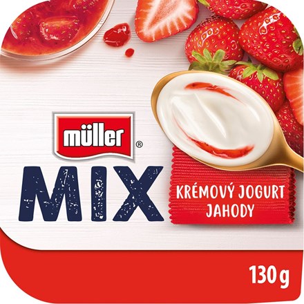 - Ochucený slazený jogurt s 23 % jahodové složky.