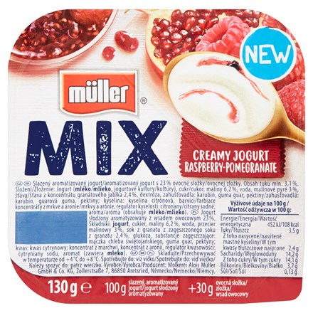 Jogurt mix malina/ granátové jablko chlaz. 4 x 130 g