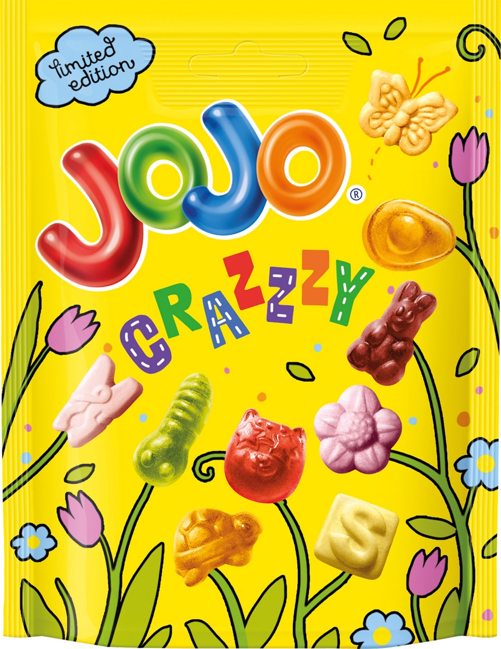 - glukózový sirup, cukr, pitná voda, želatina, kyseliny (kyselina jablečná, vinná, citronová), koncentrát jablečné šťávy 1,3 %, rostlinné koncentráty (černá mrkev, mrkev, světlice barvířská, ibišek), palmový olej, regulátor kyselosti (askorban sodný), aromata (třešeň, pomeranč, jablko, černý rybíz, malina, broskev, jahoda, zmrzlina), lešticí látka (karnaubský vosk), extrakt ze světlice barvířské, koncentrát spiruliny, barvivo (paprikový extrakt).