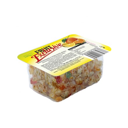 - pomerančová kůra 28 %, citronová kůra 25 %, cukr, glukózo-fruktózový sirup, papája, kůra z cedrátového citronu 1 %, regulátor kyselosti: kyselina citronová; barviva: karmín, patentní modř V; extrakt z kurkumy.