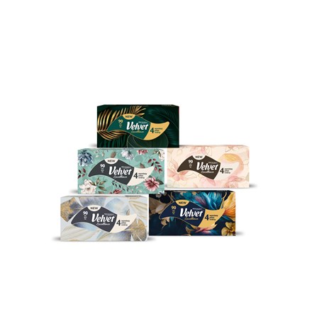 - Elegance, luxus a extra péče je ukrytá v novince Velvet Excellence. 90 ks jedinečných, čtyřvrstvých kosmetických ubrousků, které jsou výjimečně delikátní, přesto dostatečně pevné. Kapesníčky nabízejí extra péči o pleť a nadčasové, prémiové designy.