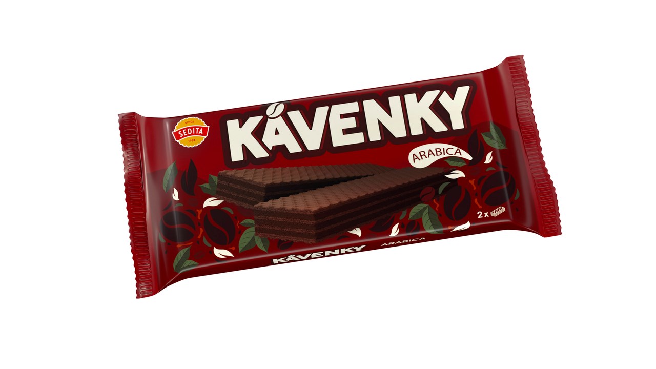 - Tmavé oplatky s krémovou náplní kávovou (78%).
