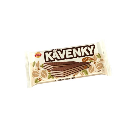 - Tmavé oplatky s mléčno-krémovou náplní (78%) s přírodním kavovým aromatem