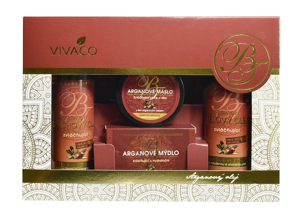 Arganový olej dárková sada (sprchový olej 200 ml + těl. olej 200 ml + mýdlo 100 ml + těl. máslo 100 ml)