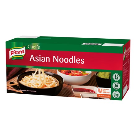 - KNORR Asijské nudle jsou sušené semolinové nudle, které obsahují vaječný bílek. Nudle jsou vhodné zejména jako přísada do asijských polévek či salátů. Velmi snadno se připravují, vaří se 16 minut v osolené vodě nebo v Knorr bujónu. Tento výrobek běžně neobsahuje masovou složku. - Kvalitní sušené semolinové nudle - Snadná příprava - Při udržování v teple se nelepí - Neobsahují mléko