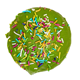 - PŠENIČNÁ mouka; voda; karamelová náplň 25% (MLÉKO plnotučné zahuštěné slazené, glukózo-fruktózový sirup, cukr, voda, modifikovaný škrob E1442, cukr karamelizovaný (<1 %), přírodní aroma, zahušťovadlo E418, konzervant E211, konzervant E202), Zelená poleva s pistáciovou příchutí 12% (cukr, rostlinné tuky a oleje (palmojádrový, palmový, kokosový olej, slunečnicový olej), sušená LAKTÓZA (MLÉKO), emulgátor: slunečnicový lecitin (E322); barviva: chlorofylin (E141), kurkumin (E100), lutein (E161b); přírodní aroma; smažící tuk (rostlinný olej jednodruhový - palmový); pekařská směs ( PŠENIČNÁ mouka, cukr, sušená SYROVÁTKA, VAJEČNÝ bílek, sušený palmový tuk (palmový olej, glukózový sirup, MLÉČNÁ bílkovina), VAJEČNÁ směs sušená, jedlá sůl s jódem (jedlá sůl, jodičnan draselný), emulgátor E471, LEPEK, emulgátor E472e, protispékavá látka E341, zahušťovadlo E466, barvivo E160(i), látka zlepšující mouku E300); droždí; řepkový olej; posypka (cukr 70 % ; PŠENIČNÁ mouka; kakaový prášek; lešticí látka: karnaubský vosk E903; barviva: karmín E120, beta-karoten E160a, karamel E150b, brilantní modř E133.