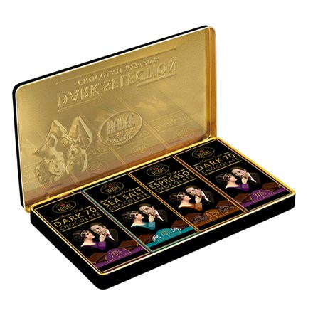 - Hořká čokoláda: kakaová hmota, cukr, kakaové máslo, odtučněný kakaový prášek, emulgátor SÓJOVÝ lecitin, Aroma: vanilka.Hořká čokoláda s mořskou solí: kaková hmota, cukr, kakaové máslo, kakaový prášek se sníženým obsahem tuku, emulgátor SÓJOVÝ lecitin, mořská sůl (0,3%).Hořká čokoláda s espressem: kakaová hmota, cukr, kakaové máslo, káva (1,65%), emulgátor: E442