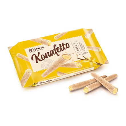 - Oplatkové trubičky plněné náplní s vanilkovou příchutí (59 %).