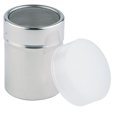 - Handled mesh top shaker O 5,5 cm, height 7,5 cm stainless steel with plastic cover