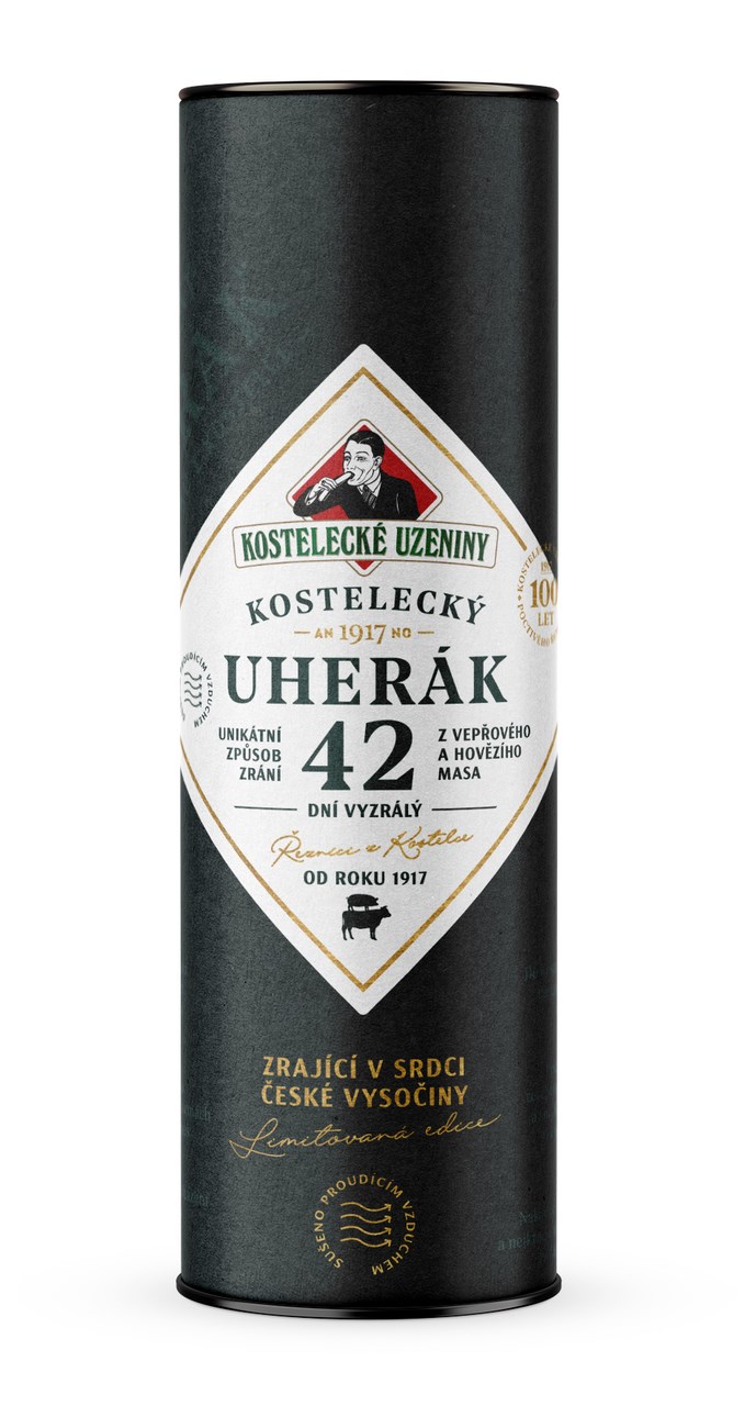 - KŘEMEŠNÍK 100 g výrobku je vyrobeno ze 150 g masa. Složení: vepřové maso, vepřové sádlo, jedlá sůl, startovací kultury, směs koření, extrakty koření, dextróza, cukr, konzervant E250, E252, antioxidant E301. KOSTELECKÝ UHERÁK 100 g výrobku je vyrobeno ze 150 g masa. Složení: vepřové maso, vepřové sádlo, hovězí maso, jedlá sůl, startovací kultury, směs koření, extrakty koření, dextróza, cukr, konzervant E250, E252, antioxidant E301. HERMÍN 100 g výrobku je vyrobeno ze 155 g masa. Složení: vepřové maso, vepřové sádlo, jedlá sůl, startovací kultury, směs koření, extrakty koření, sušený SÝR, dextróza, glukózový sirup, konzervant E250, antioxidant E301. HERKULES Složení: vepřové maso, vepřové sádlo, hovězí maso, jedlá sůl, konzervant E250, kořenící přípravek (koření, dextróza, antioxidant E301), startovací kultura mikroorganismů. Na 100 g výrobku bylo použito 128 g masa. Střívko není určeno ke konzumaci. UHERSKÁ KLOBÁSA Složení: vepřové maso, vepřové sádlo, hovězí maso, jedlá sůl, konzervant E250, kořenící přípravek (dextróza, koření, maltodextrin, jedlá sůl, antioxidant E301), startovací kultura mikroorganismů, vepřové střívko. Na 100 g výrobku bylo použito 136 g masa.