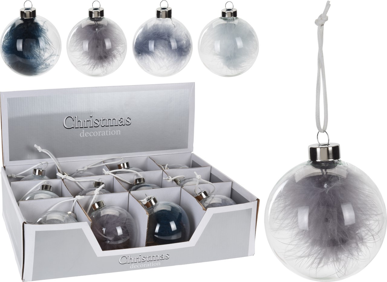 Koule skleněná s peřím 80mm mix barev 1 ks