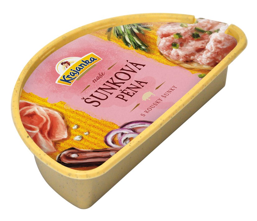 - Vepřová šunka 29% (vepřové maso 88%, vývar, glukózový sirup, aroma, antioxidant E316), vepřové sádlo, voda, vývar, škrob, sušené MLÉKO, dextróza, emulgátor: SÓJOVÝ LECITIN, zahušťovadlo E407, jedlá sůl, kouřové aroma, látky zvýrazňující chuť a vůni E621, E635, stabilizátor E451, antioxidant E301, konzervant E250, barvivo E120.