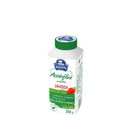 - acidofilní mléko jahodové, kysaný mléčný výrobek ochucený